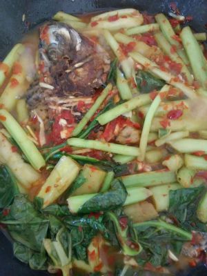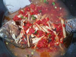 辣椒熟透后加少量的水以增加鱼干的口感,稍后出锅