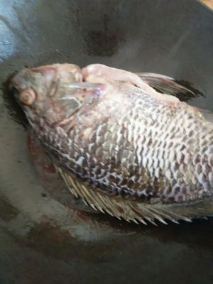 将罗非鱼宰好洗干净,用盐腌泡5分钟左右,加适量花生油热锅,将鱼煎熟。
