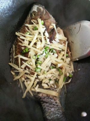 加入姜丝和尖椒,喜欢辣的朋友可以多加尖椒。