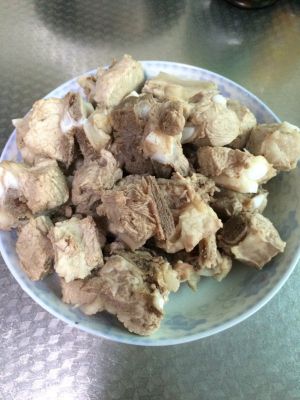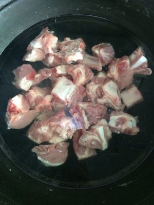 排骨化开洗干净,锅里放冷水放排骨,大火烧开后在把排骨捞出来(去血水)。