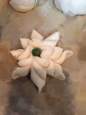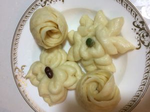 放入蒸锅,大火,蒸12分钟即可。蒸熟馒头,蓬松香软,像花儿一样美,非常好吃。
