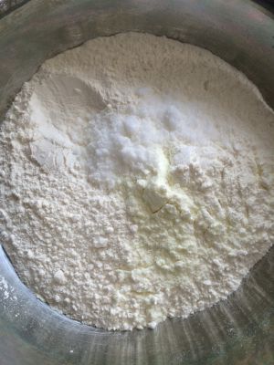 白面团的做法: 20克白砂糖加水煮沸,等白砂糖溶解之后,放凉,150克面粉加酵母拌均,倒入糖水拌均,揉至光滑的面团,盖上湿布,静放发酵。