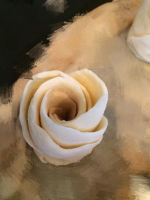 在面团的上方,用刀划二刀,能把南瓜面团露出来,发酵之后,像花儿一样美。