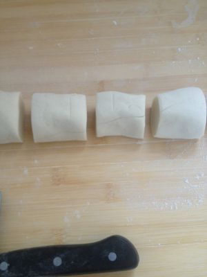 将面团揉成均匀的长条形后,用刀切成等分,即成刀切馒头生坯