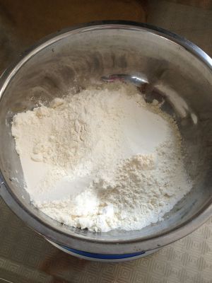 将面粉、酵母、泡打粉、糖放入容器内混合均匀后加入水,搅拌成块后用手揉搓成团,再反复揉成光滑的面团