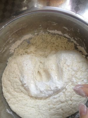红薯面团也一样活成面团,这个根据红薯自身的水分,酌情添加,同样室温发酵两个小时。