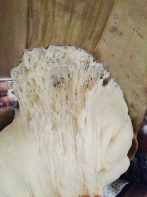 面团体积增加一倍、拉开见蜂窝状,发酵完成