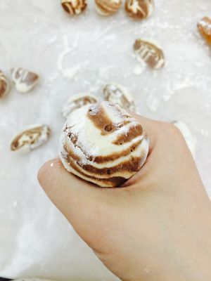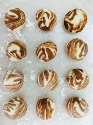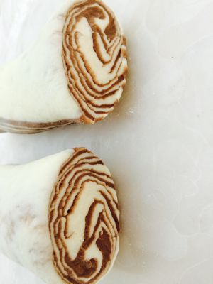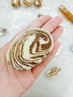 成品图,要想纹路更细腻些,只要减少有色面团的量即可