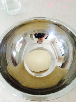 在加入化开的冰糖水(可以换白糖,主要是小孩要吃所以用冰糖水,凉了在倒入面粉,不然会烫死酵母)揉成光滑的面团,揉到面净手净盆净就可以了