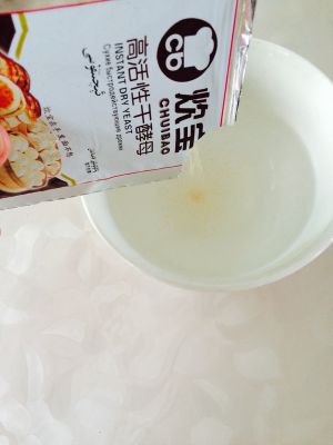 把面和玉米面2:1的量调好,取一热奶杯倒入一杯鲜牛奶在微波炉里转半分钟温的就行。加入糖、酵母,用筷子搅到酵母和糖溶化。