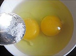 芹菜叶切碎、食盐、花生油拌入鸡蛋液中拌匀