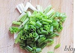 加入香葱炒出香味;加入盐调味,淋上一点香油就可以出锅了。