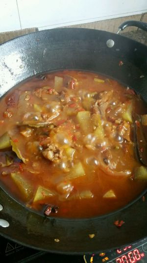 此时可以加入,自己喜欢的土豆或者冬瓜都可以,加入适量水,莫过排骨,可加入八角,桂皮,香叶,然后中小火慢炖