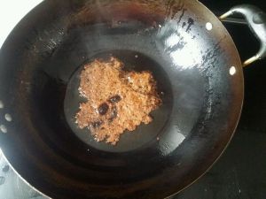 锅内倒油烧5成热放花椒、大蒜、生姜暴香盛出,放红糖烧起沫。