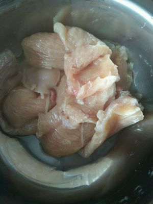 鸡胸肉一块,解冻,我的还没解冻被我硬拔,有点难看