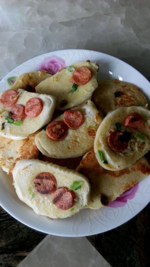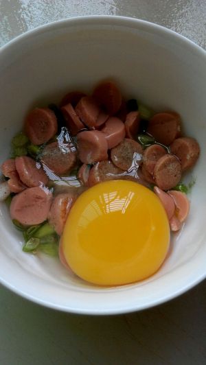 香肠切碎,与鸡蛋混合打,加盐葱花