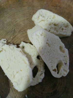 把馒头条迅速的在水里沾一下备用(因为馒头本省比较干,在水里沾后馒头条心不会太干,也不会吸太多油。)