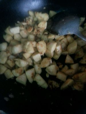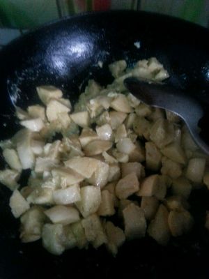 炒匀家盐、鸡精、五香粉、要少放因为馒头里放盐了。炒好后就可以出锅了。