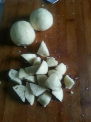 南瓜切块 放进微波炉 打10分钟 取出 去皮 捣烂 加入面粉 酵母 和面 醒20分钟
