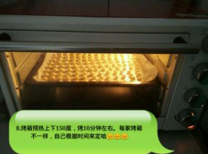 8.烤箱预热上下150度,10分钟左右。每个牌子烤箱不一样,可以根据自家烤箱时间来观察。