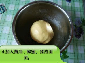 4.加入黄油,蜂蜜,揉成光滑的面团(黄油提前软化一下)