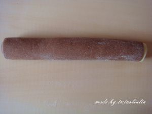 将双色面片卷成卷,尽量卷得紧实一些,不要松懈。