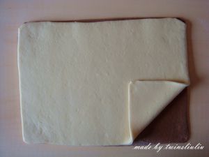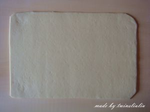取等量原色面团,擀成与咖色面片等大小的原色面片。