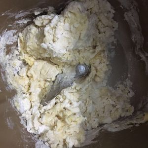 倒入酵母水,用筷子把面粉混合成絮状!面包机选择和面模式大概10-15分钟左右,和成光滑的面团