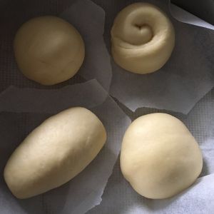 拿出面团整理光滑之后放入烤箱内发酵一小时左右(没有烤箱的可以放在蒸锅上,锅里先把水加热至冒小泡泡然后关火进行发酵)