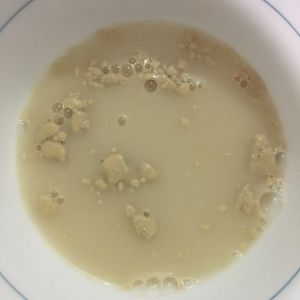 用温水将酵母化开备用,水温不能太高,容易把酵母烫死失去活性噢。