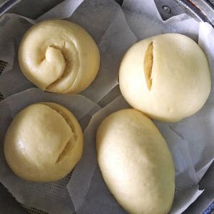 锅中加入水,大火烧开,上汽之后把发好的馒头放入蒸锅中蒸15分钟,大个蒸20分钟!焖五分钟(馒头下来包上油纸防止粘连和水的侵入!)