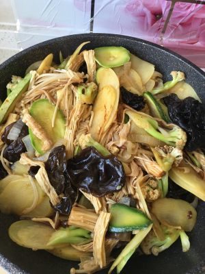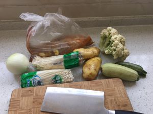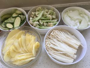 土豆切片 菜花掰开 鱼用葱姜蒜料酒生抽腌制一晚备用