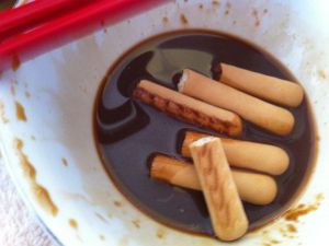 咖啡酒糖液,我没有按书上的方子做,那个量太大了,而且我只有速融-v-,泡了一杯咖啡,加了一点咖啡蜜(KALUHA)。