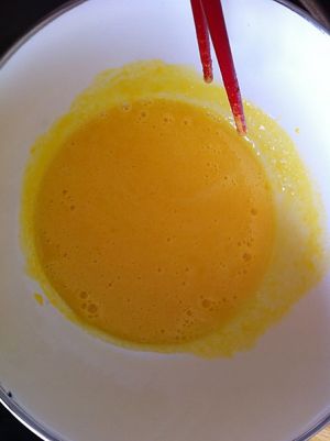 蛋黄 40克糖隔温水不停的搅拌至蛋糊浓稠略微发白。隔的水不能烧开,以防将蛋黄烫熟