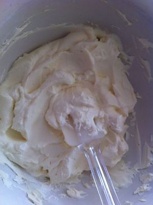 马斯卡彭芝士,用电动打蛋器搅打至顺滑无颗粒。