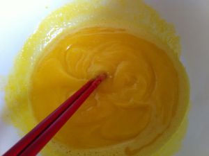 蛋黄用手动打蛋器打发至浓稠稠的状态。