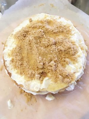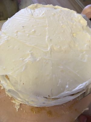 放凉,加酒,加打发好的淡奶油。用刮刀搅拌。成为奶酪糊。