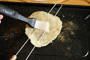 在鱼片两面均匀的抹上一层COOK100金牌烧烤酱。