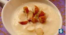 冷却后撒上北杏仁,大杏仁做装饰。一份杏仁豆腐就做成了。