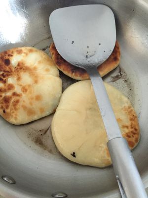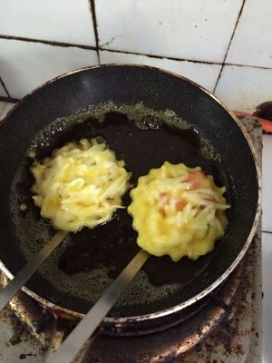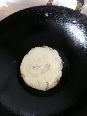 入鍋,锅里放油,小火煎到两面金黄,煎的时候锅里少放点水,盖上盖,水干饼就熟了,这样煎出来的饼不干
