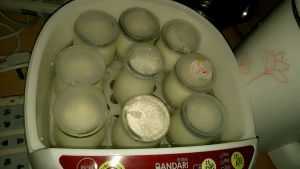 将小瓶码放在带有酸奶功能的面包机或酸奶机里,开始发酵。
