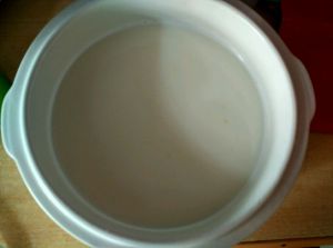把要用来制作酸奶的器材进行消毒!我是用清水洗完之后再用开水烫一遍,再放进微波炉里叮一下!(特别说明:我用的是特百惠的微波炉碗纯属个人喜好(^^))