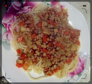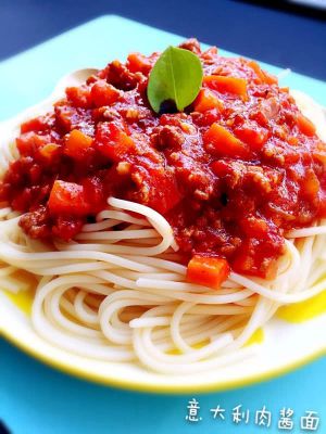 最后将意大利面捞出放入盘中,淋上肉酱,酸酸甜甜、酱香四溢的意大利肉酱面就大功告成了