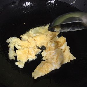 翻炒快熟时,加入鸡蛋一同翻炒,并加入盐。