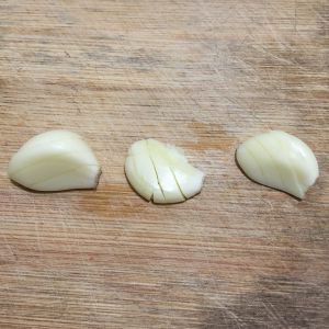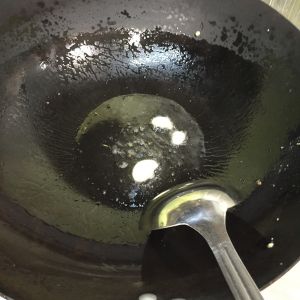 国内加入剩下的食用油,烧热,加入蒜瓣,爆香。