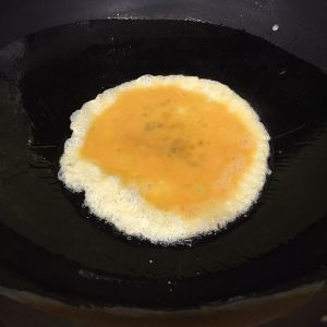 炒锅内加入食用油少许,烧热后加入蛋液。
