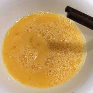 蛋液朝一个方向打匀。我们我们CC这次买的鸡蛋感觉不错喔。