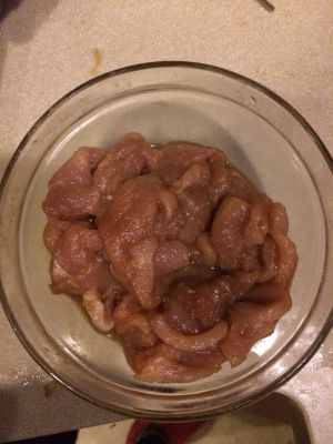 猪肉切片,用料酒,生抽,盐,淀粉抓匀,入味十分钟