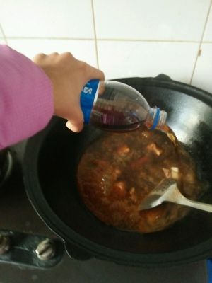 融化后倒入可乐,大火烧开后调小火煮20~30分钟
