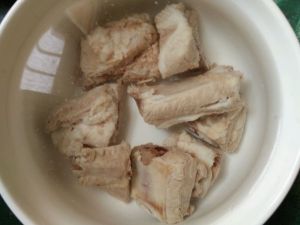 排骨砍成大小合适的块,可由店家代做,新鲜排骨最好,我的是冰箱里的,也不需要完全解冻,只要大小合适即可
